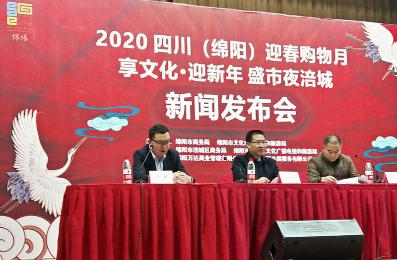 2019年12月6日,由綿陽市商務(wù)局、綿陽市文化廣播電視和旅游局主辦,綿陽市涪城區(qū)商務(wù)局、綿陽市涪城區(qū)文化廣播電視和旅游局協(xié)辦,綿陽萬達(dá)廣場商業(yè)管理有限公司、四川騰邁會展服務(wù)有限公司聯(lián)合承辦的“2020四川(綿陽)迎春購物月暨享文化•迎新年盛市-夜涪城”的新聞發(fā)布會在涪城區(qū)文化中心舉行。